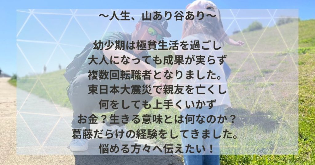 そして2児の父親として昔、苦労したからこそ妻と我が子には金銭面で苦労させたくない!将来を深く考え自分自身のスキルアップと生活の絶対的な安定と被災地の声を届けられるWEBライターを目指して始めました。